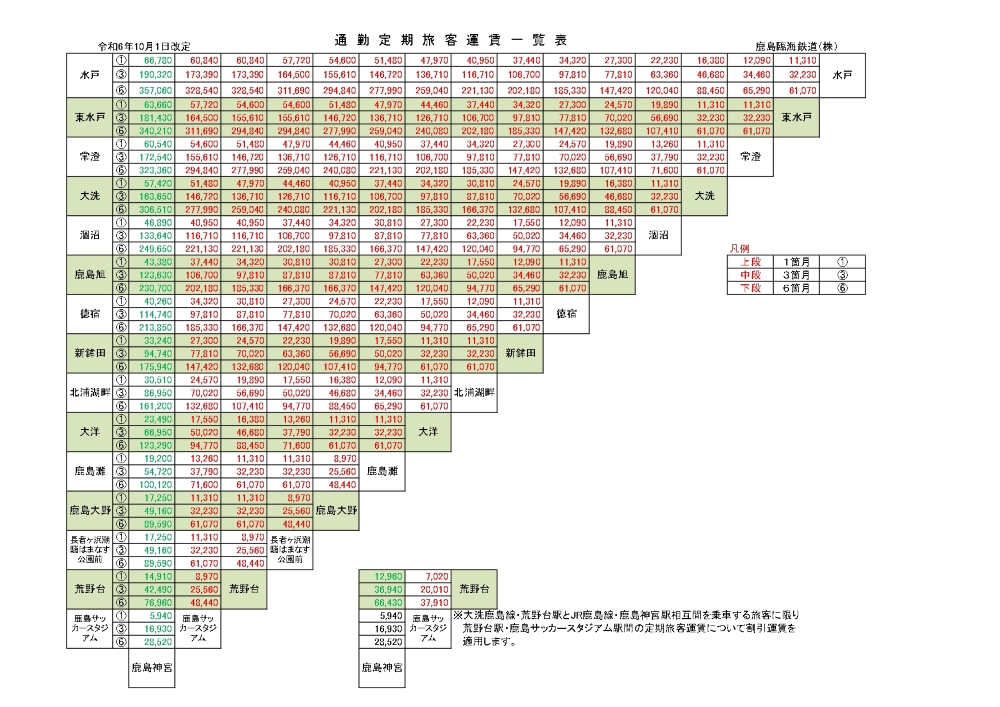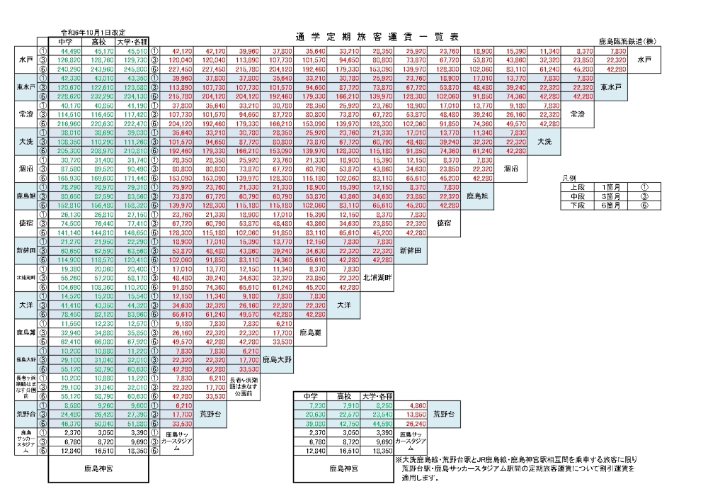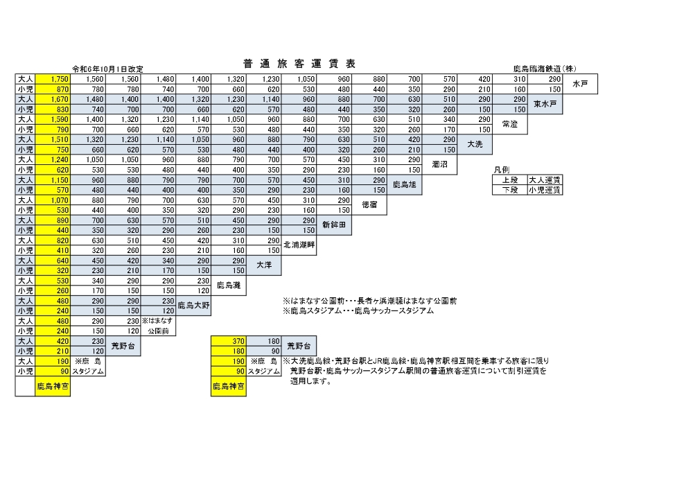 2026年3月14日のJR東日本ダイヤ改正により、鹿島神宮駅までご利用の際の運賃が変わります。これに伴う弊社ホームページ運賃表の更新作業のため、本日(13日)の概ね19時頃より24時頃まで、トップページ上の運賃表が一時的に閲覧できない状態となります。