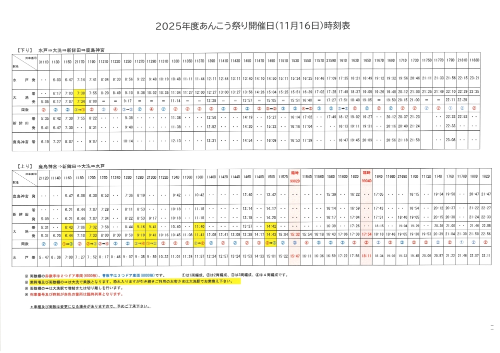 11/29(土)は、メルスタフェス2025が開催されるため、鹿島サッカースタジアム駅に臨時停車いたします。