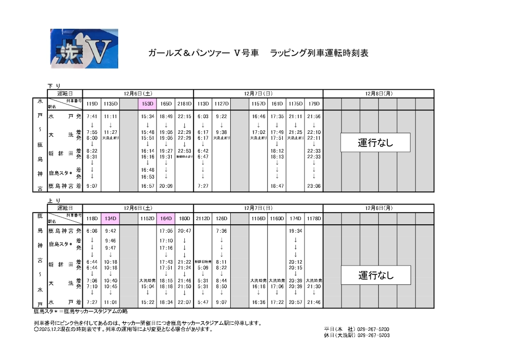 11/18(火)~11/21(金) 『ガールズ&パンツァー』 ラッピング列車(Ⅴ号車)運行時刻のお知らせ