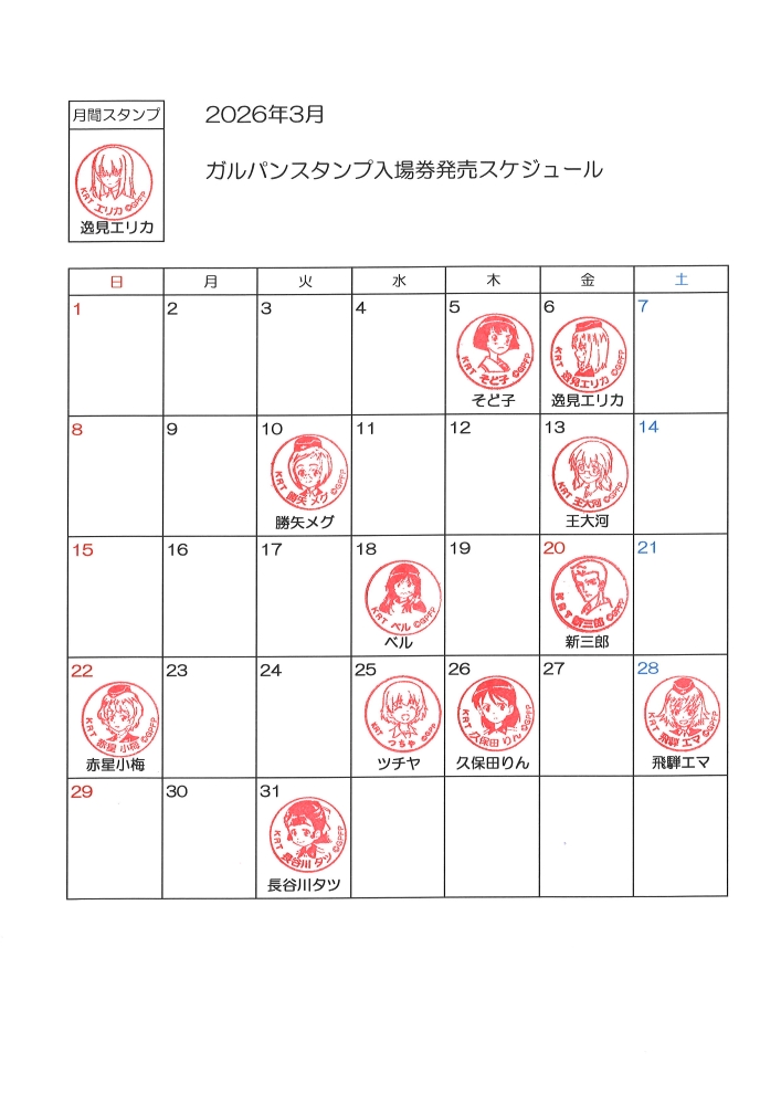 3月のガルパンスタンプ入場券スケジュール