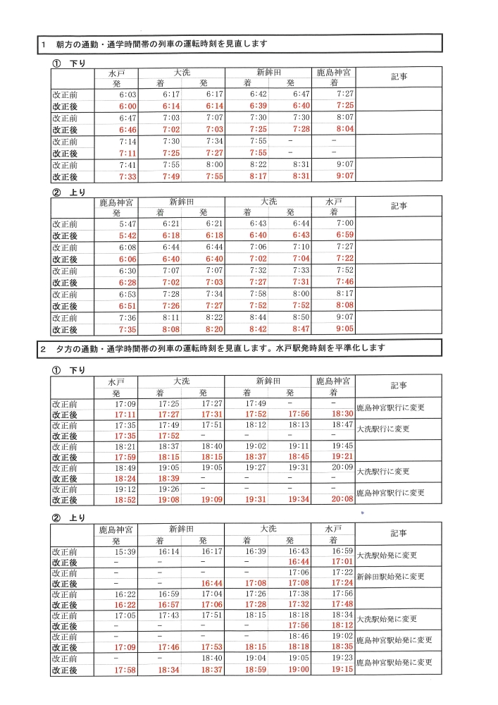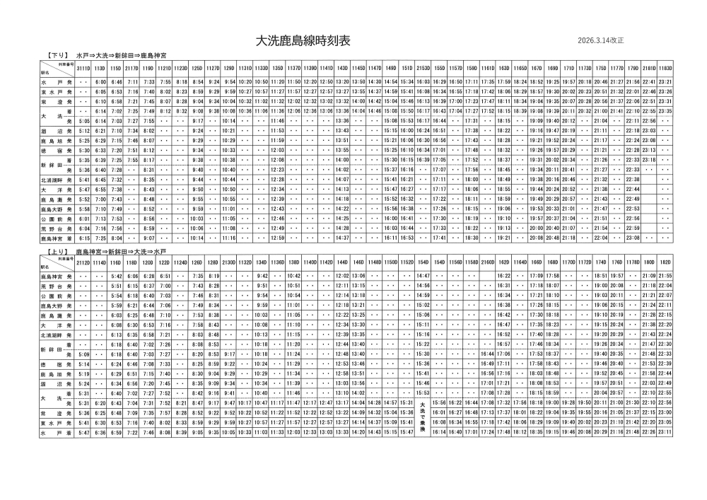 鹿島臨海鉄道㈱では、3月14日(土)に大洗鹿島線のダイヤ改正を実施いたします。