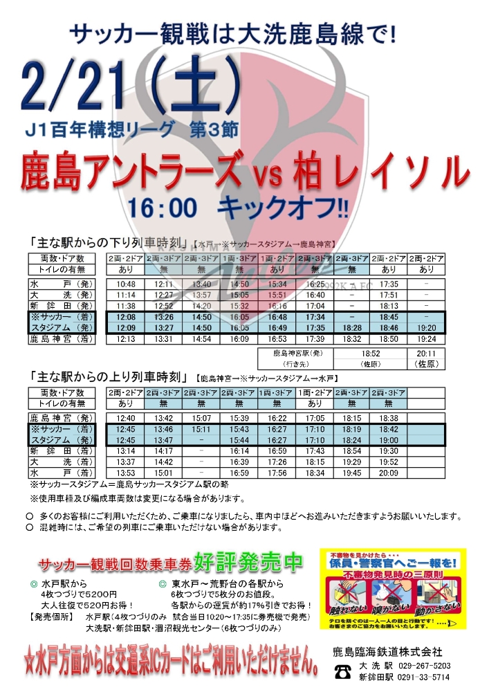 2/21(土) 鹿島サッカースタジアム駅臨時停車時刻表(PDF)