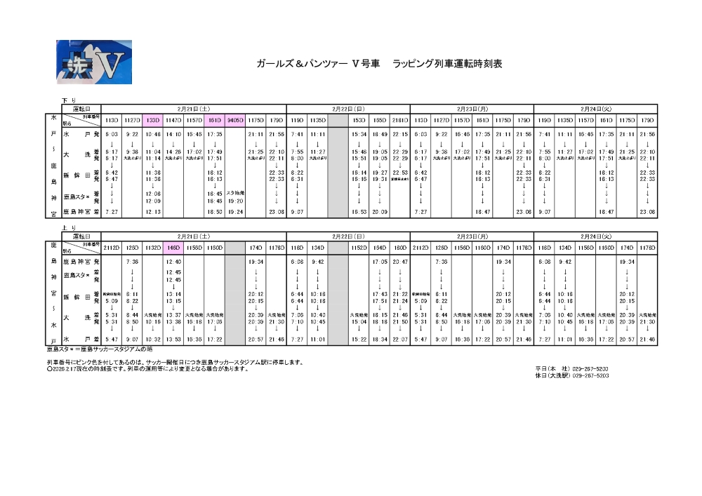 2/14(土) 鹿島サッカースタジアム駅臨時停車時刻表(PDF)